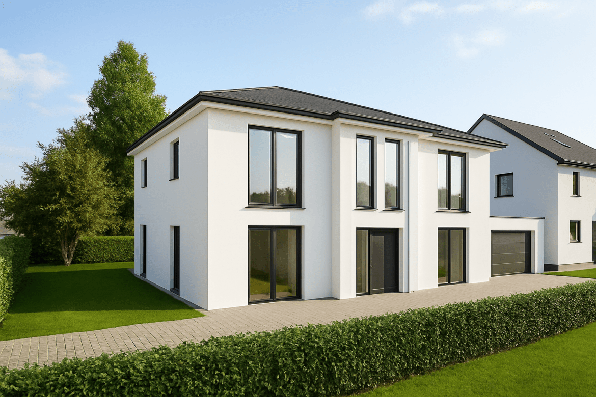 - Fenster: Kunststoff Dreifachisolierverglasung in weiß oder anthrazit. Optional sind die Fenster auch in einer Holz – Alu Ausführung erhältlich.