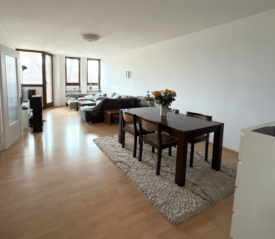Die helle 4-Zimmer-Wohnung befindet sich im 3. Obergeschoss eines gepflegten in 1981 errichteten Mehrfamilienhauses und kann bequem über den Aufzug erreicht werden. Die Wohnung bietet ein großzügig geschnittenes Wohnzimmer, welches über einen Balkon verfügt, der mit seiner sonnigen Westausrichtung einen erholsamen Rückzugsort bietet. Die Küche mit Fenster zum Balkon wurde als separater Raum konzipiert, der sich am Wohnzimmer anschließt. Über dem sich am Wohnzimmer angrenzenden Flur gelangen Sie zu den weiteren Räumen, die als Schlafzimmer, Kinderzimmer, Arbeitszimmer und/oder Gästezimmer genutzt werden können. Darüber hinaus verfügt die Wohnung über ein Gäste WC sowie eine kleine Abstellkammer mit integrierten Waschmaschinenanschluss. Die Wohnung befindet sich in einem gepflegten Zustand und ist mit einem Laminatboden im Wohnzimmer sowie in den Schlafzimmern ausgestattet.
